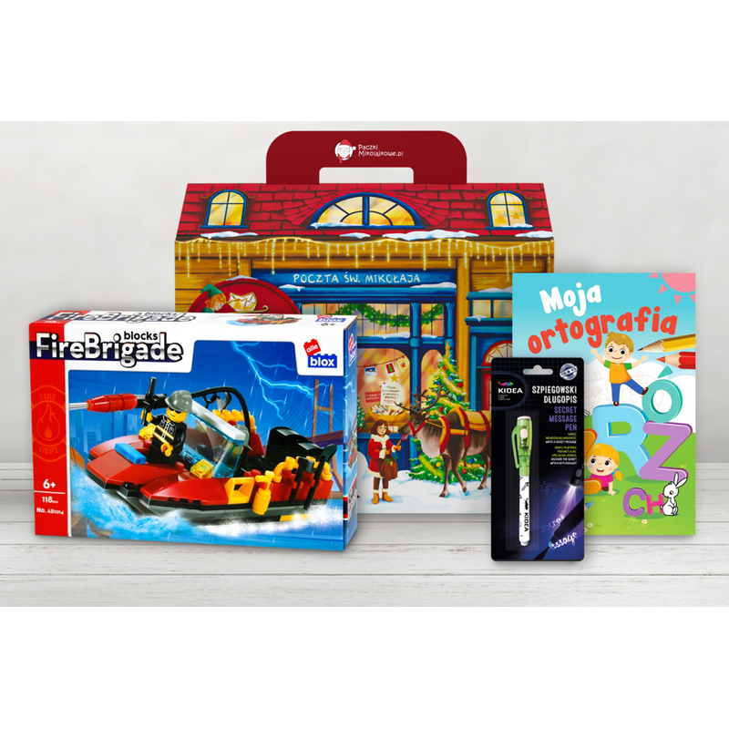 Paczka zawiera zestaw klocków konstrukcyjnych rozwijających kreatywność i wyobraźnię, długopis szpiegowski pobudzający ciekawość i fantazję oraz ćwiczenia wspierające naukę ortografii, pamięci i koncentracji.