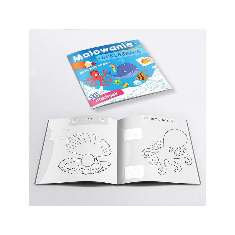 Kolorowanka „Malowanie-doklejanie. Zwierzęta wodne” to kreatywna propozycja dla dzieci od 3. roku życia, łącząca kolorowanie z zabawą naklejkami. Dzięki podpisanym ilustracjom maluchy poznają nazwy zwierząt wodnych, ćwiczą sprawność manualną, koordynację ruchową i kreatywność. To drobny upominek mikołajkowy do paczki, który doskonale sprawdzi się w żłobkach, przedszkolach i w domu. Edukacyjna forma i atrakcyjne ilustracje czynią z tej książeczki idealny produkt do paczek mikołajkowych dla dzieci, wzbogacając świąteczne zestawy o kreatywną zabawę.