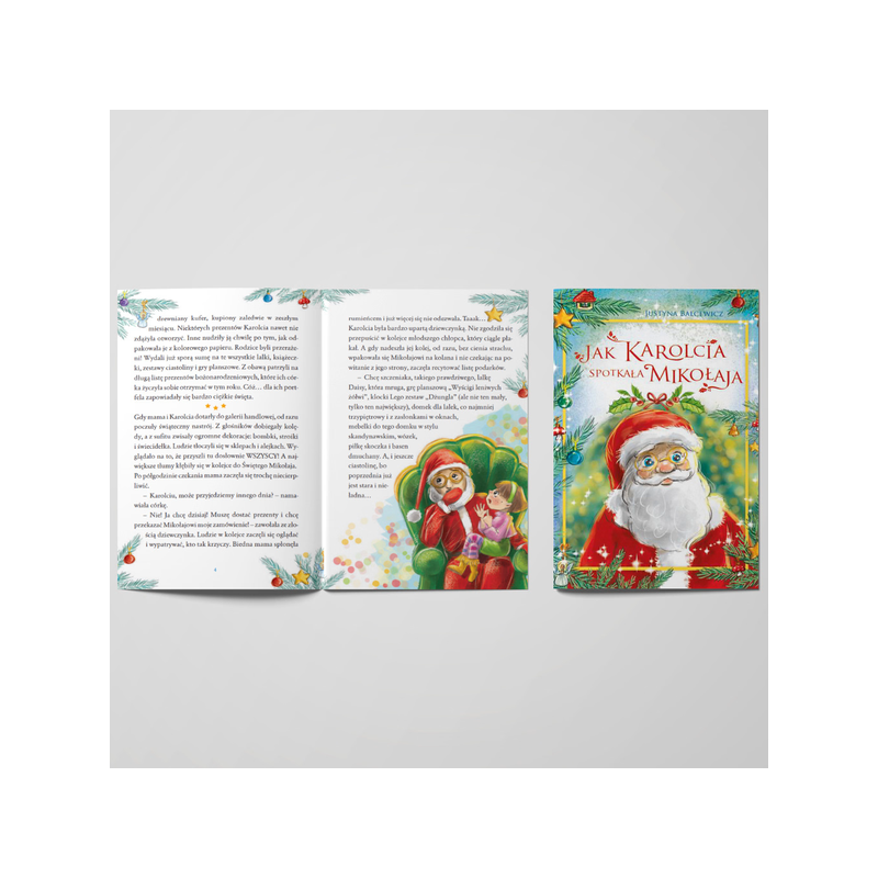 Opowiadanie Jak Karolcia spotkała Mikołaja to ciepła i pełna refleksji świąteczna historia dla dzieci od 5. roku życia. Piękne ilustracje i wciągająca fabuła uczą najmłodszych, czym jest wdzięczność i radość z obdarowywania innych, wprowadzając przy tym w wyjątkowy klimat Bożego Narodzenia. To doskonały pomysł na prezent do paczki świątecznej oraz produkt do paczek mikołajkowych dla przedszkoli – odpowiedni zarówno dla dziewczynek, jak i chłopców. Dzięki mądrej treści i świątecznej oprawie książka jest także uniwersalnym prezentem mikołajkowym do paczek dla dzieci, wzbogacając świąteczne zestawy upominkowe i rozgrzewając serca najmłodszych.