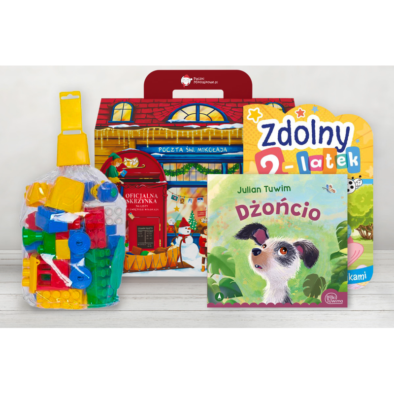 W paczce znajduje się zestaw klocków, które rozwijają wyobraźnię, zdolności manualne oraz wspierają koordynację ręka–oko. Paczka zawiera także uroczą, świąteczną bajeczkę, pobudzającą fantazję malucha i budującą nawyk wspólnego czytania. Całość uzupełniają ćwiczenia z naklejkami, które wspierają rozwój dziecka, uczą koncentracji i cierpliwości.