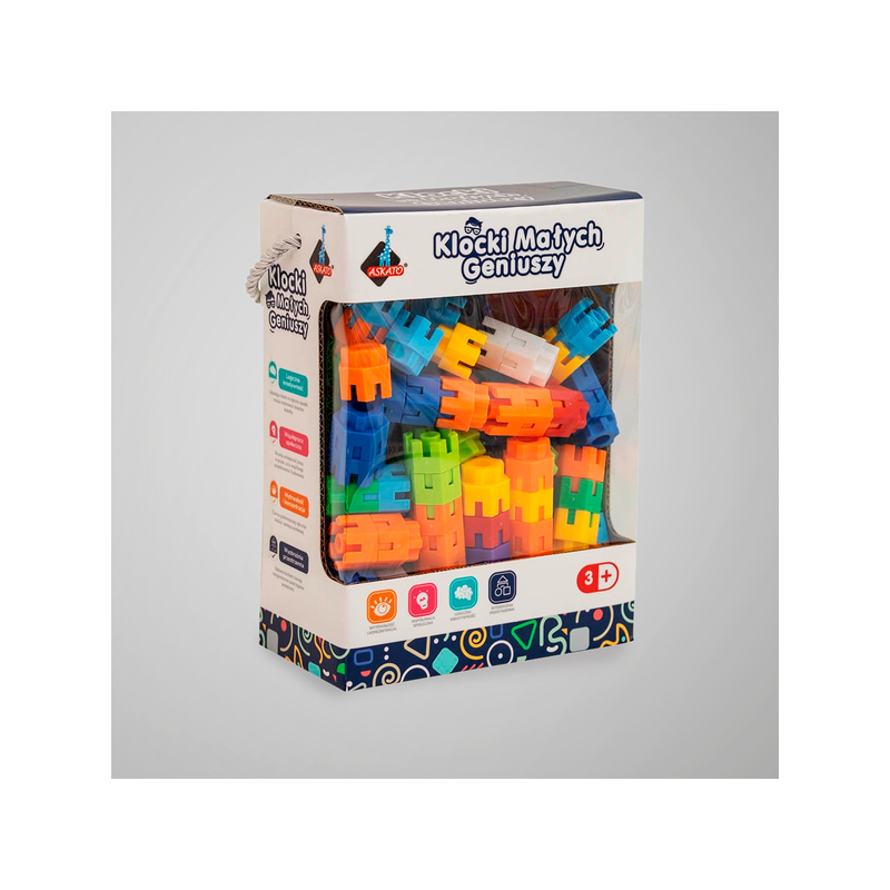 Klocki Małych Geniuszy - Korony to zestaw konstrukcyjny dla dzieci od 3. roku życia, który rozwija wyobraźnię i umiejętności krok po kroku. W komplecie znajduje się ok. 150 elementów, dzięki którym mali konstruktorzy mogą tworzyć nieograniczoną liczbę budowli i konstrukcji. Zabawa klockami wspiera rozwój logicznego myślenia, kreatywności, koncentracji i wytrwałości, a także uczy współpracy społecznej i rozwija wyobraźnię przestrzenną. To praktyczny upominek do paczki mikołajkowej oraz uniwersalny prezent mikołajkowy do paczek dla dzieci.