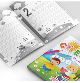 Praktyczny zeszyt wprowadzający dziecko w świat liczb i prostych działań matematycznych. Maluch uczy się zapisywać cyfry krok po kroku – najpierw po śladzie, a potem samodzielnie. Szlaczki rozwijają sprawność manualną i motoryczną. Kolorowe naklejki i proste zadania sprawiają, że nauka staje się zabawą.