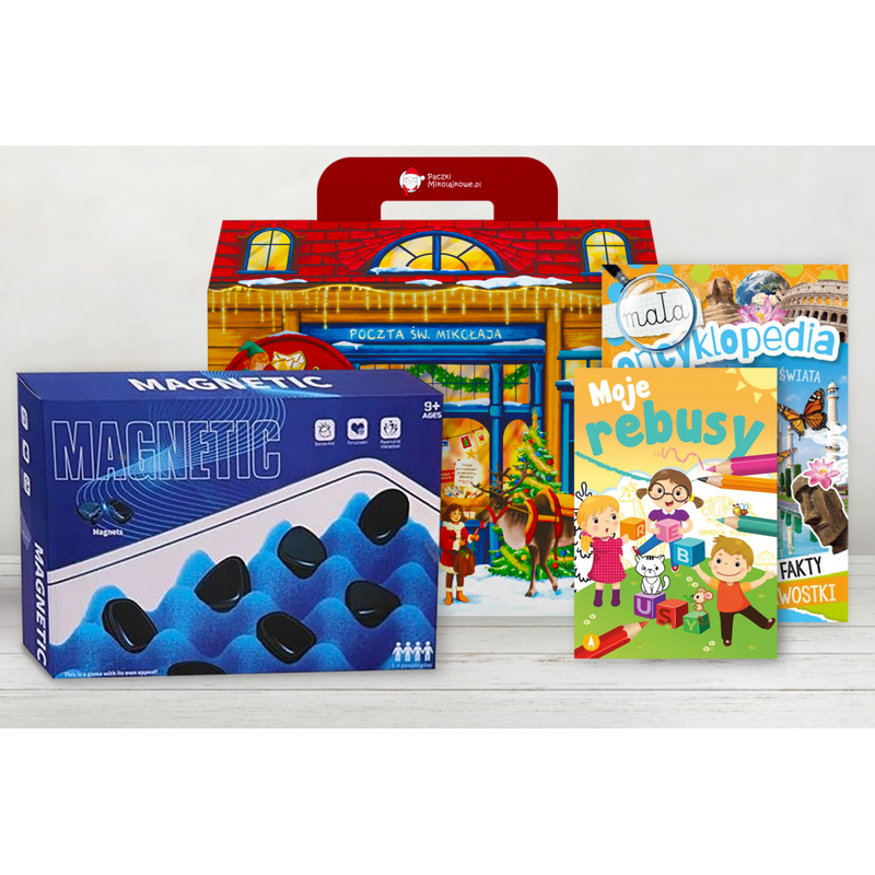 Magnetyczna gra z kamieniami to pełna emocji zabawa strategiczna dla dzieci od 9. roku życia. Zadaniem graczy jest układanie kamieni na planszy w taki sposób, by nie połączyły się ze sobą. Jeśli jednak dojdzie do zetknięcia, przeciwnik przejmuje wszystkie nasze kamyczki. Gra rozwija logiczne i strategiczne myślenie, uczy planowania, koncentracji i przewidywania ruchów przeciwnika.