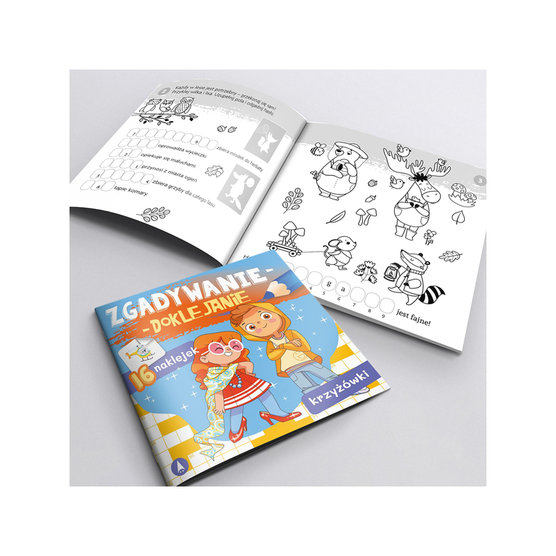 „Zgadywanie i doklejanie: Krzyżówki dla dzieci” to połączenie zabawy i nauki, które rozwija spostrzegawczość, koncentrację i logiczne myślenie. W środku czekają słowno-obrazkowe krzyżówki, kolorowanki i naklejki, które czynią rozwiązywanie zadań jeszcze przyjemniejszym. Prosta, pomysłowa forma zachęca do samodzielnej pracy, a każda poprawnie uzupełniona łamigłówka daje małym odkrywcom satysfakcję i motywację do dalszej nauki. To doskonały sposób na twórcze spędzanie czasu i pierwsze spotkanie z krzyżówkami w przyjaznym wydaniu.