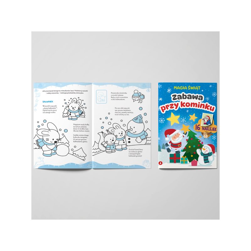 „Magia świąt. Zabawa przy kominku” to zimowa przygoda pełna radości! Dziecko koloruje, rozwiązuje zagadki, ozdabia ilustracje i tworzy własne rysunki, a nastrojowe wierszyki Ewy Stadtmüller wprowadzają w ciepły, świąteczny klimat. Naklejki dodają zabawie atrakcyjności, rozwijając wyobraźnię i sprawność manualną. Idealny produkt do paczek mikołajkowych dla dzieci.
