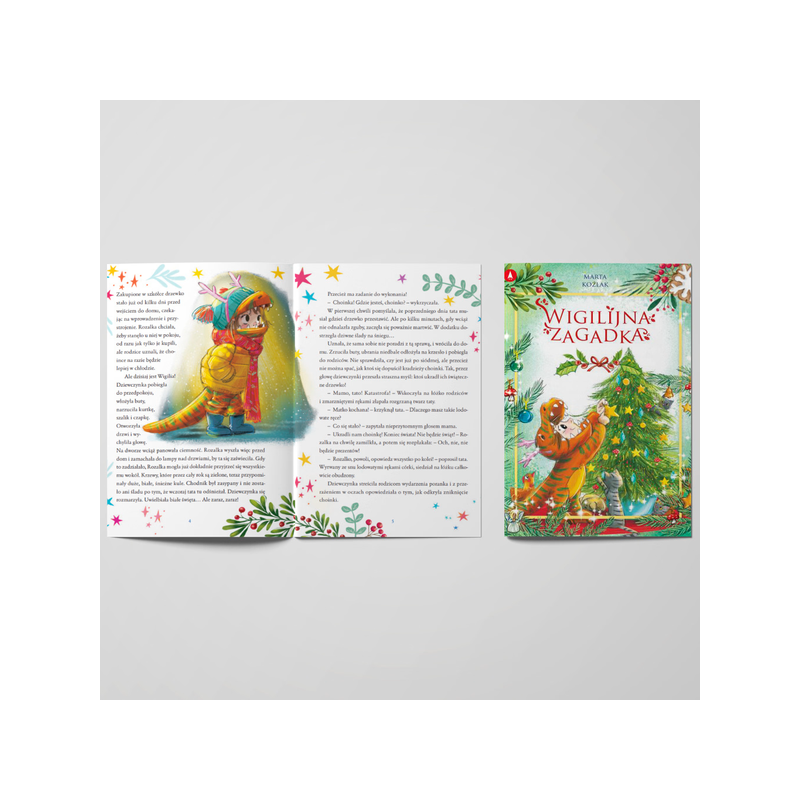 Opowiadanie Wigilijna Zagadka to pełna humoru i świątecznego klimatu historia, która wciągnie dzieci od 5. roku życia. Barwne ilustracje i ciekawa fabuła z elementem detektywistycznym sprawiają, że mali czytelnicy z radością będą odkrywać kolejne strony tej niezwykłej opowieści. To doskonały pomysł na prezent do paczki świątecznej oraz idealny produkt do paczek mikołajkowych dla przedszkoli, który spodoba się zarówno chłopcom, jak i dziewczynkom. Dzięki oryginalnej treści i świątecznemu nastrojowi książeczka stanie się uniwersalnym prezentem mikołajkowym do paczek dla dzieci, wzbogacając zestawy upominkowe i dostarczając niezapomnianych wrażeń.