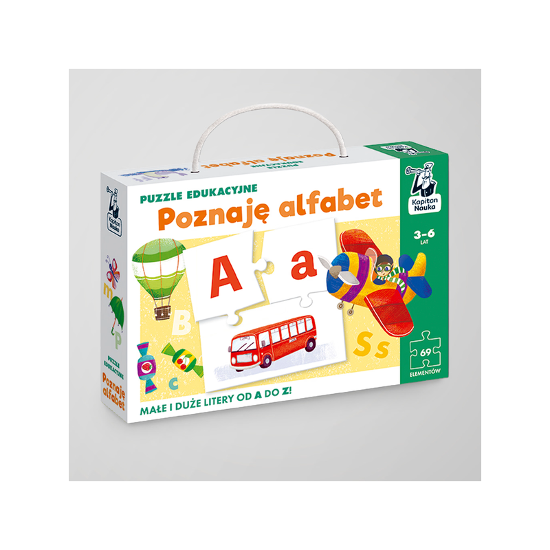Puzzle edukacyjne „Poznaję alfabet” to wciągająca zabawa, która pomaga przedszkolakom zaprzyjaźnić się z literkami - świetny produkt do paczek mikołajkowych dla przedszkoli i szkół. W zestawie znajduje się 23 trójdzielne układanki: wielka i mała litera oraz ilustracja przedmiotu, którego nazwa zaczyna się na daną literę. Zadaniem dziecka jest dopasowanie elementów tak, by stworzyły spójny zestaw - to doskonały sposób, by w naturalny i przyjemny sposób oswoić się z alfabetem i zrobić pierwsze kroki w nauce czytania. Z puzzlami można bawić się na wiele sposobów - szukać literek, wymyślać zagadki czy tworzyć własne gry dopasowane do wieku dziecka. To uniwersalny prezent mikołajkowy do paczek dla dzieci, który rozwija spostrzegawczość, koncentrację i logiczne myślenie. Puzzle sprawdzą się także jako upominek, który świetnie sprawdzi się w paczce mikołajkowej, a przy okazji mogą stać się częścią większych świątecznych zestawów upominków dla dzieci. Puzzle przeznaczone dla dzieci w wieku 3-6 lat.