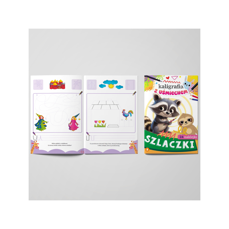„Kaligrafia z uśmiechem. Szlaczki” to idealna propozycja na początek nauki pisania. Dzięki wesołym ćwiczeniom i dużym, przejrzystym ilustracjom dziecko rozwija sprawność manualną i intelektualną, rysując szlaczki, ozdabiając obrazki, kolorując, naklejając i przechodząc labirynty. Prosty układ stron i ciekawe zadania ułatwiają skupienie i zachęcają do nauki poprzez zabawę. Zaś roześmiana żyrafka to doskonały towarzysz wspólnych chwil z książką.