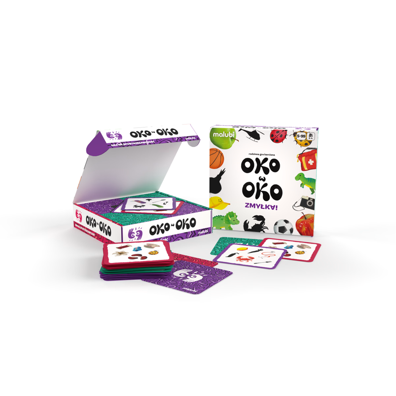 „Oko w oko Zmyłka” to gra, która wciąga od pierwszej karty i nie odpuszcza do samego końca! Wystarczy rozłożyć talię, wytężyć wzrok i ruszyć do akcji. Karty wyglądają podobnie, ale łączy je tylko jeden, sprytny element – kolor, kształt lub cień. Gra rozwija spostrzegawczość, koncentrację i cierpliwość, a każda partia to nowe wyzwanie. W pudełku znajduje się 93 karty i 4 tryby gry.