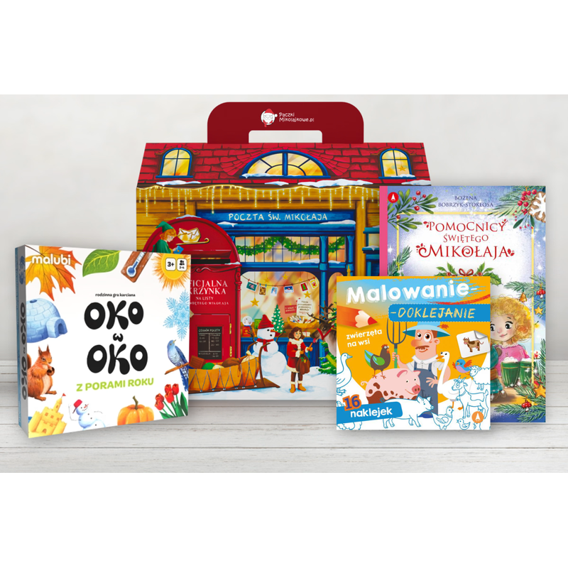 Kuferek 2025 „Poczta Mikołaja” to wyjątkowa paczka mikołajkowa z autorską, bajkową grafiką, przenoszącą dzieci w magiczny świat listów do Świętego Mikołaja. Kolorowa ilustracja pełna świątecznych detali zachwyci każdego malucha, a specjalna etykieta pocztowa do samodzielnego wypełnienia pozwala poczuć się częścią tej niezwykłej historii. Kuferek o wymiarach 30 × 26 × 10 cm (rączka 6 cm) sprawdzi się po świętach jako teczka, domek dla lalek czy skrzynia skarbów.