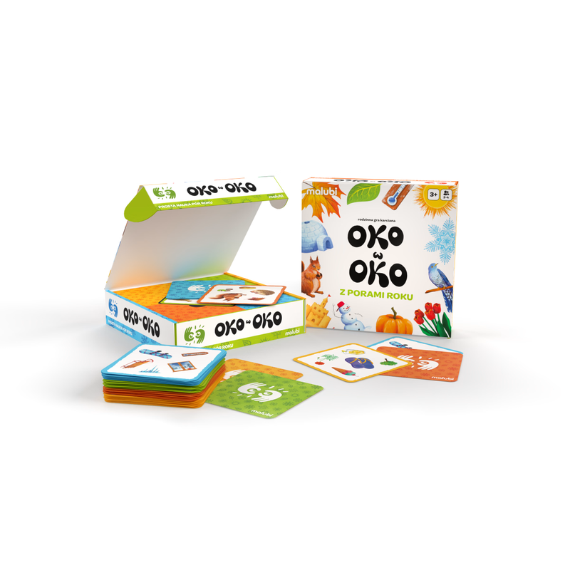 „Oko w Oko z Porami Roku” to gra, która przenosi graczy w barwną podróż przez cztery pory roku – pełną kolorów, symboli i niespodzianek! Gracze rozpoznają sporty zimowe, jesienne owoce czy wiosenne kwiaty, ćwicząc spostrzegawczość, refleks i pamięć. Gra pozwala uporządkować wiedzę o zmianach w przyrodzie i rozpoznać charakterystyczne cechy każdej pory roku. W zestawie znajduje się 84 pięknie ilustrowane karty oraz słowniczek przyrodniczy. Cztery tryby rozgrywki zapewniają naukę i emocjonującą zabawę.
