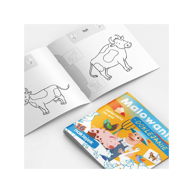 Kolorowanka „Malowanie-doklejanie ze zwierzętami na wsi” to propozycja dla dzieci od 3. roku życia. Ilustracje do kolorowania, podpisane obrazki oraz naklejki pomagają poznać nazwy zwierząt, rozwijać sprawność manualną i kreatywność. Doskonały drobny upominek do paczki mikołajkowej w domu, żłobku lub przedszkolu.
