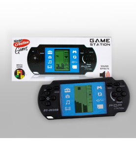 Kieszonkowa gra elektroniczna MEGA CREATIVE to mała, poręczna wersja klasycznego gameboya, idealna do zabawy w podróży, kolejce czy podczas przerwy. Zawiera wiele kultowych gier, m.in. Tetris, wyścigi czy czołgi, rozwijając spostrzegawczość i zręczność. Produkt dla dzieci od 6 lat.