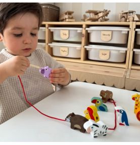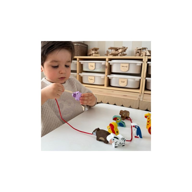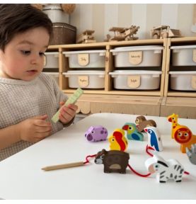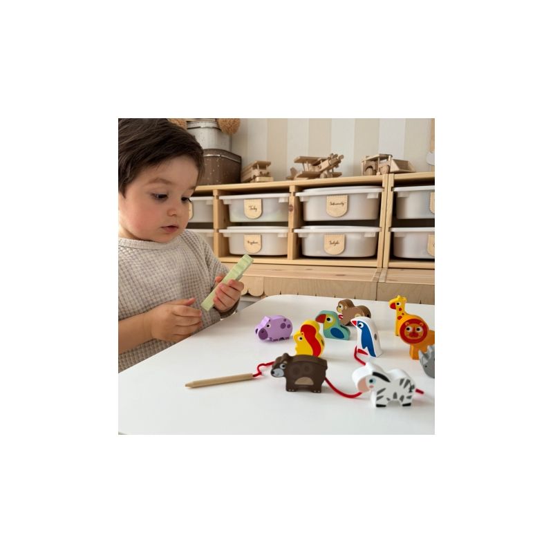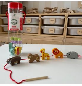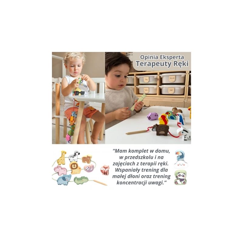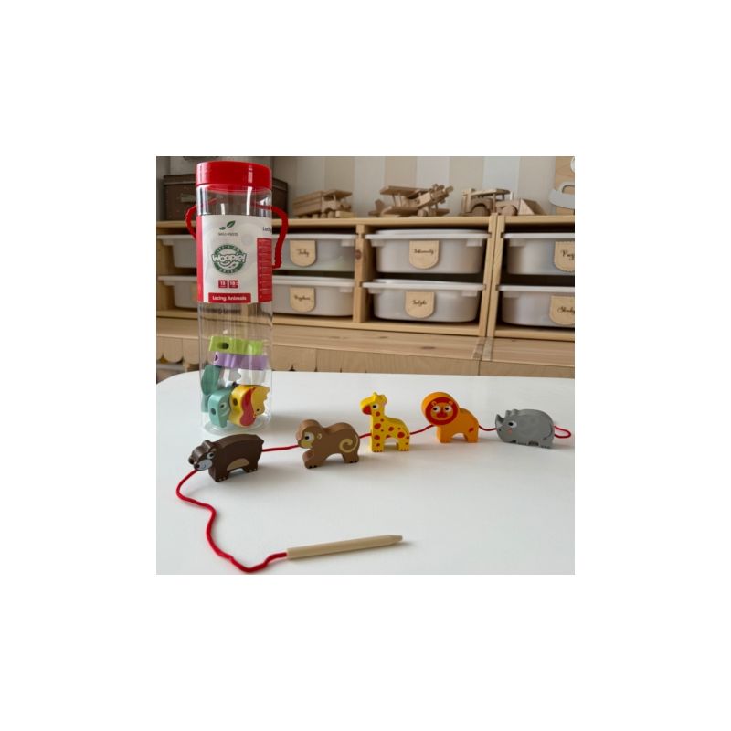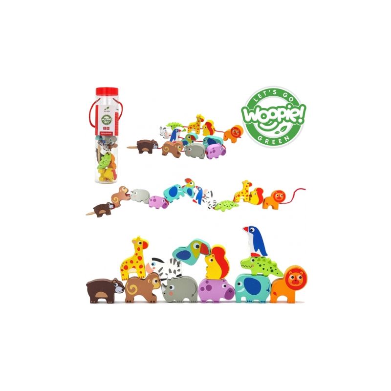 Poznaj wyjątkową przeplatankę od marki WOOPIE GREEN – to nie tylko klasyczna nawlekanka, ale prawdziwa przygoda w świecie dzikich zwierząt! Zestaw utrzymany w motywie ZOO Safari pozwala dzieciom już od 18 miesiąca życia ćwiczyć zdolności manualne, ucząc jednocześnie cierpliwości i precyzji . Dziecko ma za zadanie nawlekać drewniane koraliki z otworami na dołączony sznureczek. Każdy klocek przedstawia inne zwierzątko lub element safari – od wesołej małpki po majestatycznego lwa! To doskonała okazja, by rozwijać nie tylko motorykę małą, ale i zainteresowanie światem przyrody.