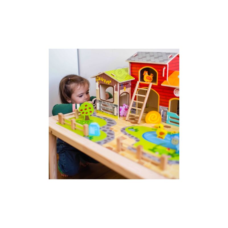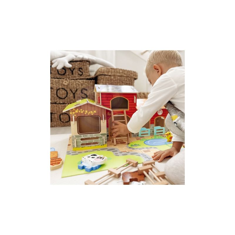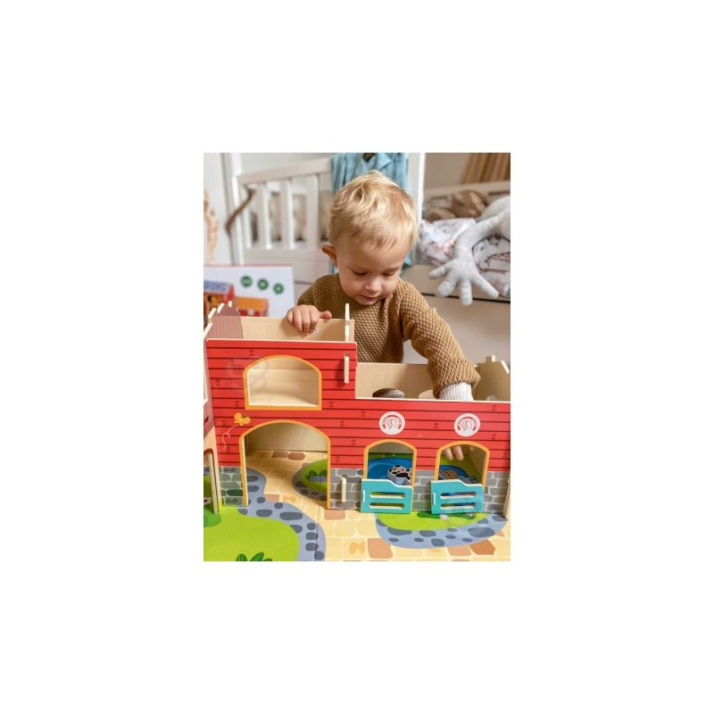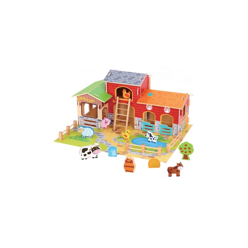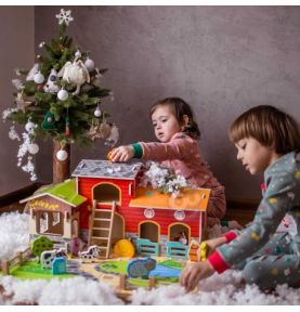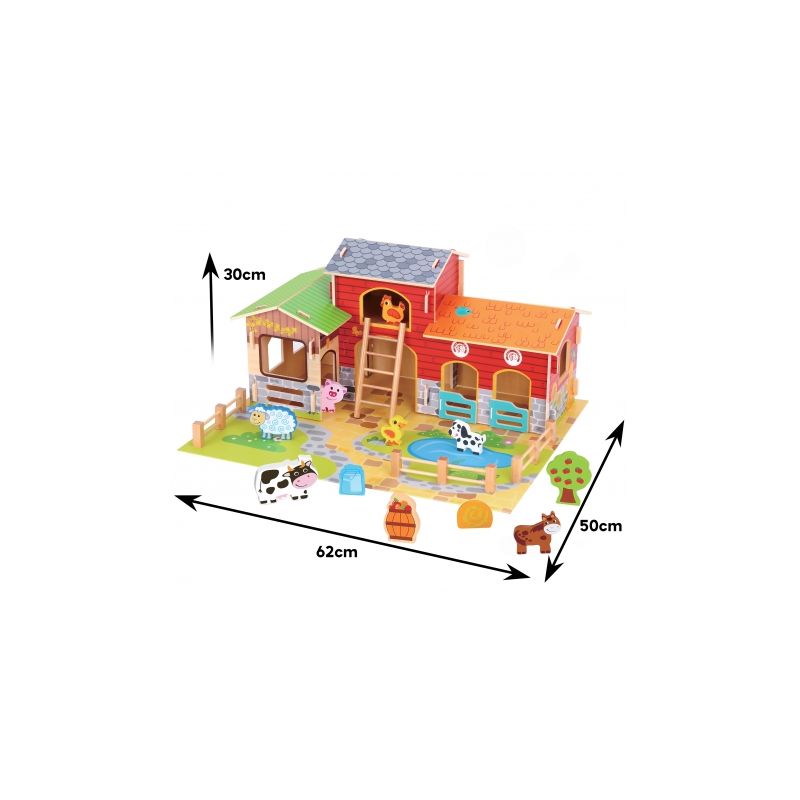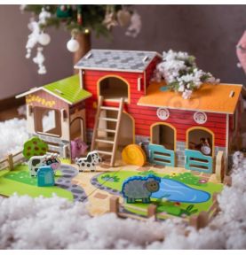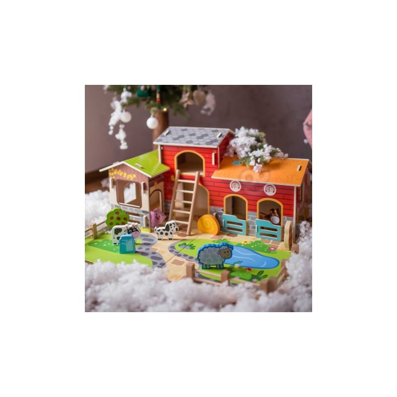 Mega Farma od marki WOOPIE GREEN to wyjątkowa zabawka, która przenosi dzieci w świat wiejskiego gospodarstwa, pełen zwierząt i codziennych obowiązków. Zestaw składa się z 18 elementów, w tym budynków takich jak stajnia, obora i kurnik — idealny do odgrywania ról i kreatywnej zabawy. Przeznaczony dla dzieci od 3 roku życia, wykonany z drewna, wspiera rozwój manualny i wyobraźnię. Dzięki realistycznym detalom maluch może samodzielnie zorganizować farmę, opiekować się zwierzątkami i poznawać przyrodę.
