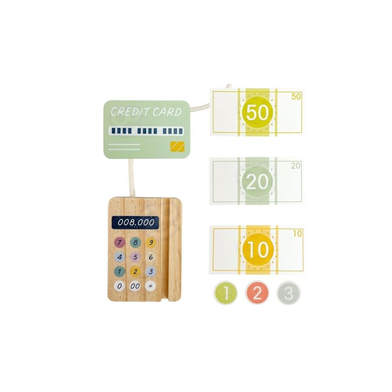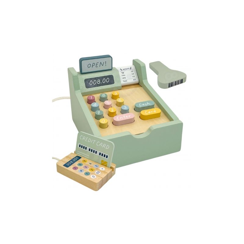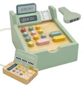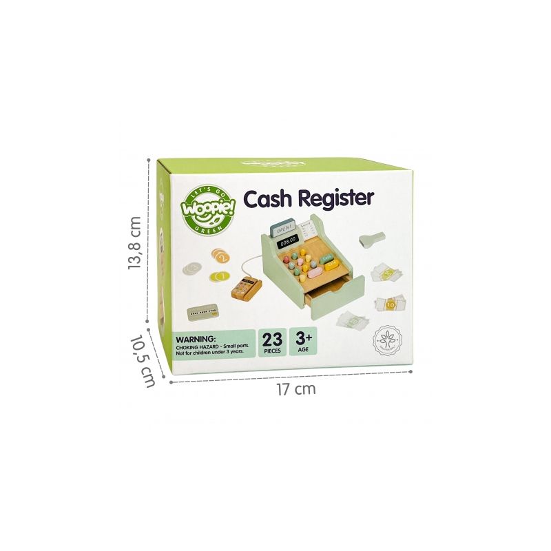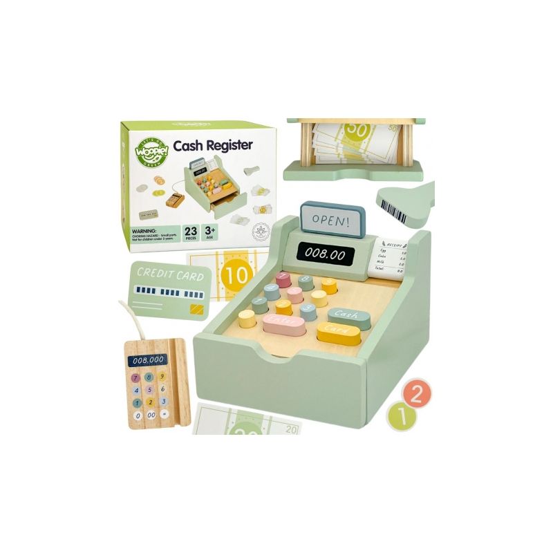 WOOPIE GREEN Drewniana Kasa Sklepowa Edukacyjna z Akcesoriami 23 el. FSC