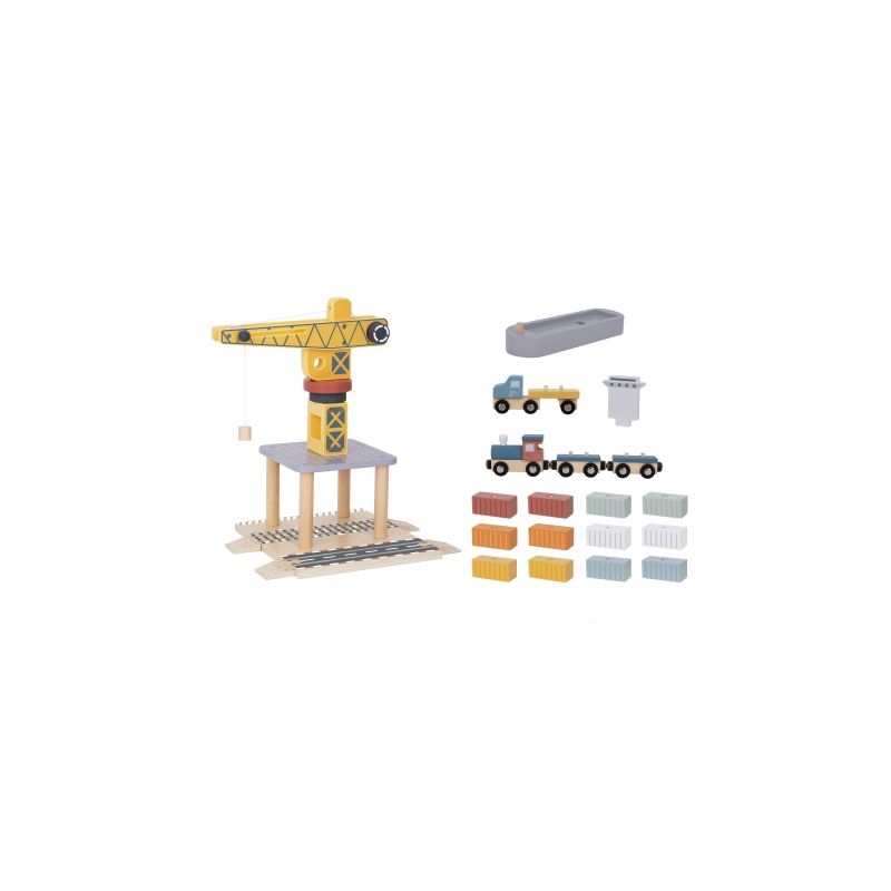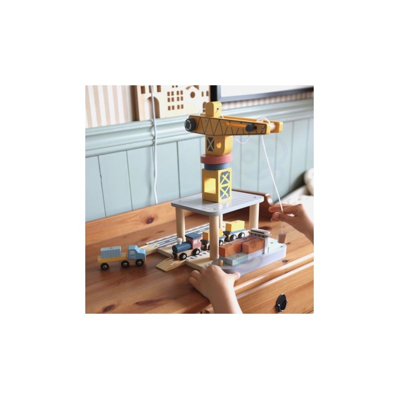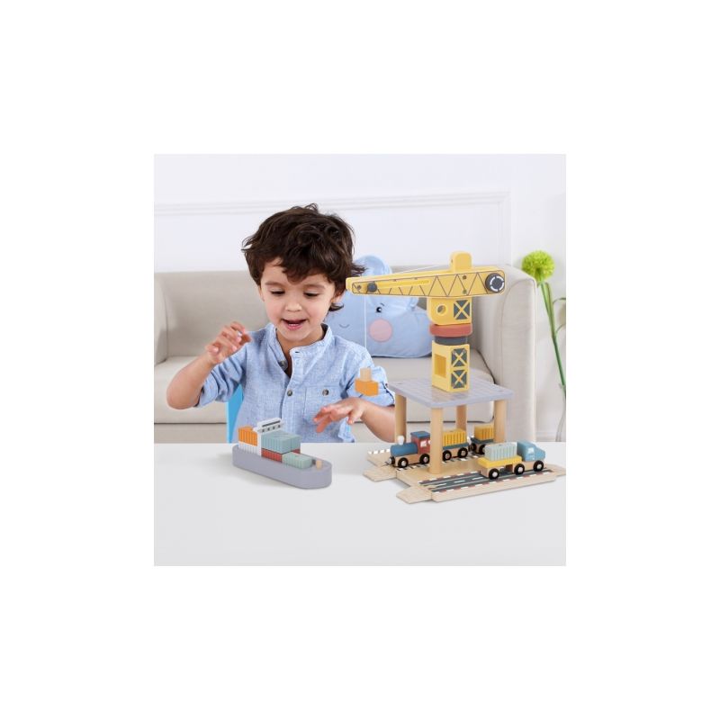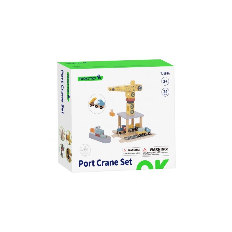 TOOKY TOY Dźwig Portowy Drewniany Zestaw