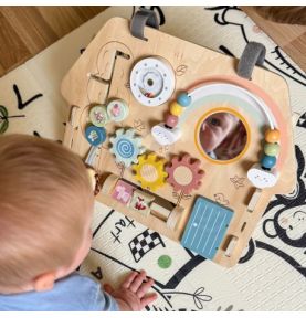 TOOKY TOY Duża Drewniana Tablica Manipulacyjna Domek - Centrum Aktywności