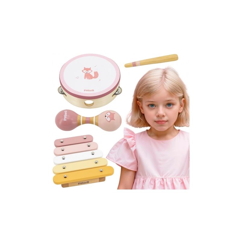 Różowy zestaw instrumentów Viga to idealny komplet muzyczny dla dzieci od 2 lat. Lekkie, bezpieczne instrumenty wspierają poczucie rytmu, słuch i kreatywność, a pastelowa kolorystyka zachęca do zabawy.