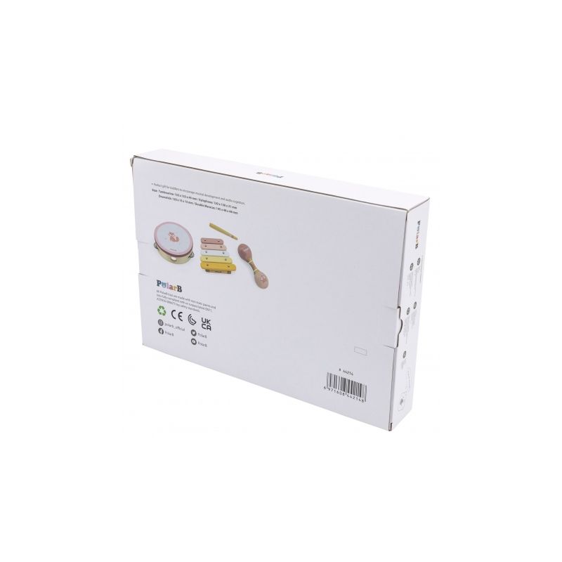 Tamburyn: 15,3 x 15,3 x 4,5 (cm); Ksylofon: 13 x 13 x 3,1 (cm); Marakas: 14,5 x 4,8 x 4,8 (cm)