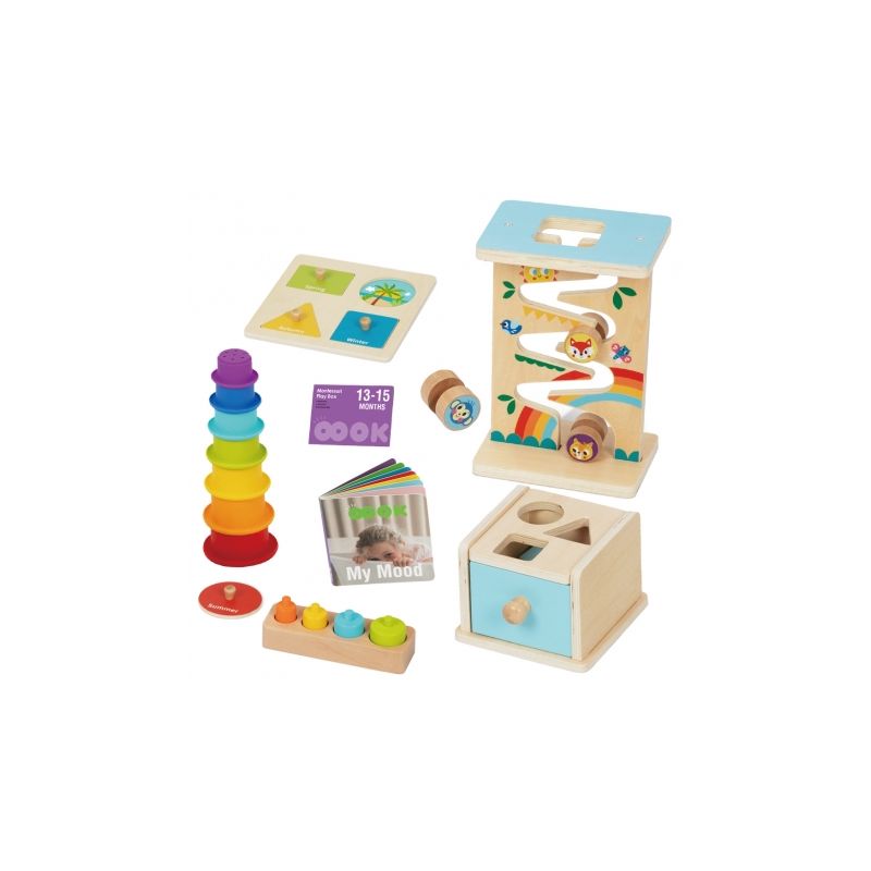 Drewniany Box Montessori 6w1 Woopie Green to idealny zestaw rozwojowy dla maluchów 13–15 miesięcy. Aż 6 sensorycznych zabawek wspiera motorykę, zmysły i logiczne myślenie, oferując wartościową zabawę w duchu Montessori.