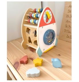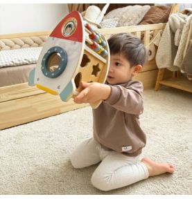 Kosmiczna Rakieta Aktywności od Tooky Toy to wyjątkowa zabawka, która przenosi najmłodszych prosto w kosmiczny świat pełen ruchu, barw i odkryć. Jej pastelowe kolory oraz uroczy kształt zachęcają do zabawy, a sześć różnorodnych aktywności pozwala dziecku ćwiczyć małą motorykę, koordynację wzrokowo-ruchową oraz pobudza wyobraźnię. Przesuwanie koralików, sortowanie kształtów czy obracanie galaktyki to tylko część atrakcji, które czekają w tej pięknie zaprojektowanej rakiecie wykonanej z drewna z certyfikatem FSC.