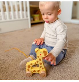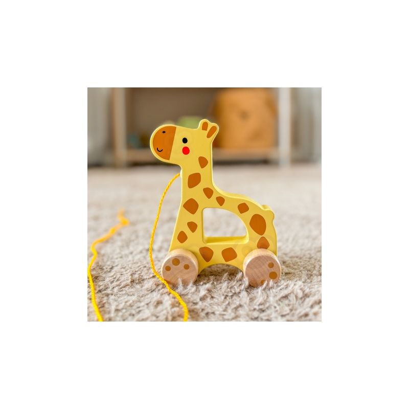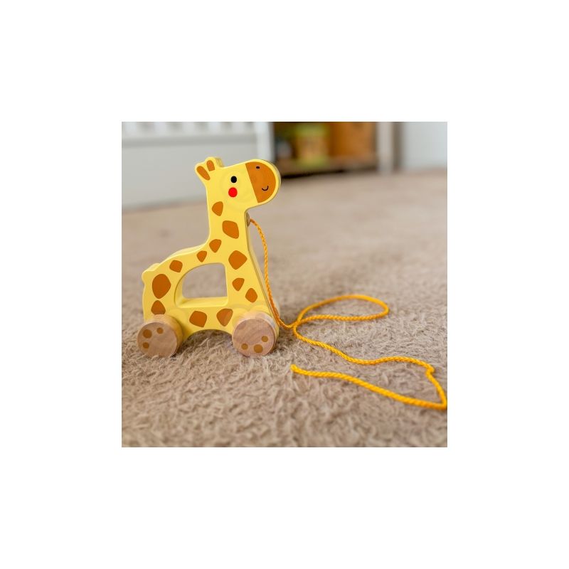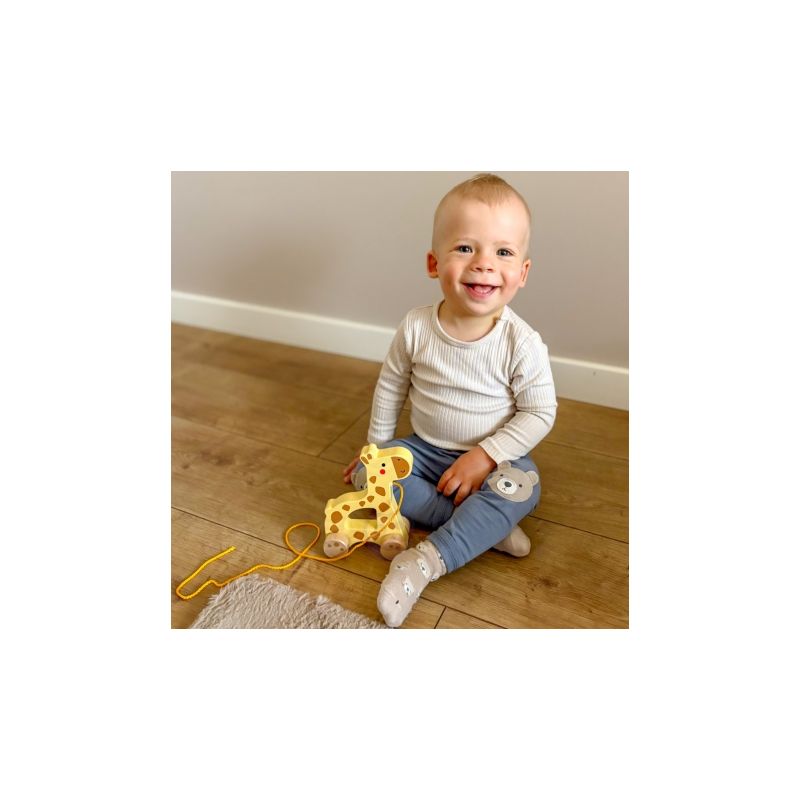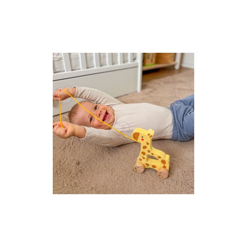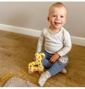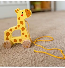 Żyrafka do ciągnięcia marki Tooky Toy to niezwykła i edukacyjna zabawka dla najmłodszych. Uroczy design w kształcie żyrafy, umieszczonej na stabilnych kółkach, ułatwia maluchom manewrowanie podczas nauki chodzenia. Przymocowana na stałe smycz pozwala dziecku prowadzić swojego drewnianego przyjaciela wszędzie, wywołując radość i zachęcając do aktywnej zabawy.