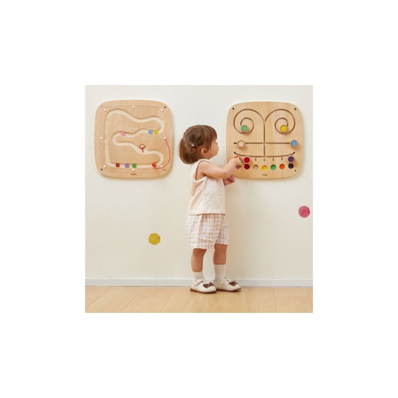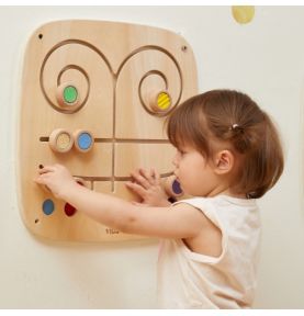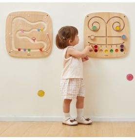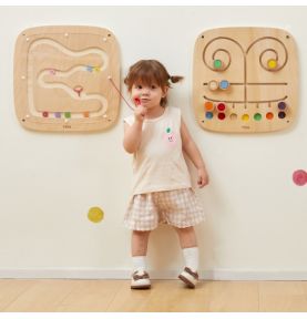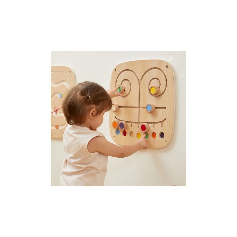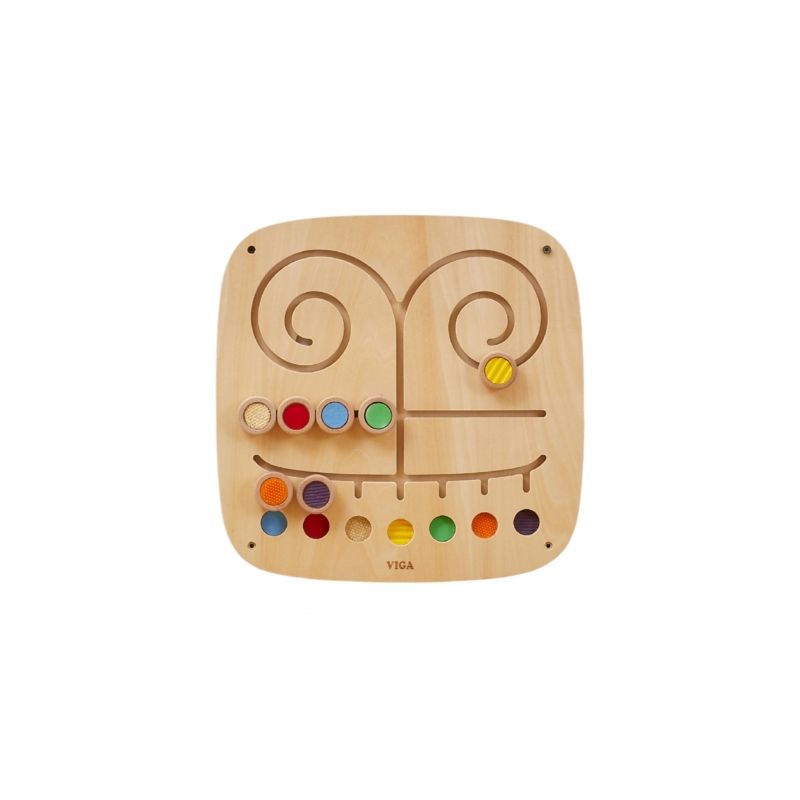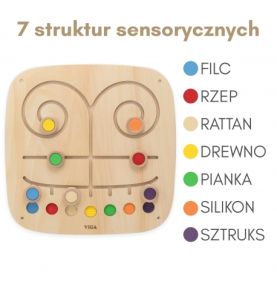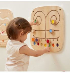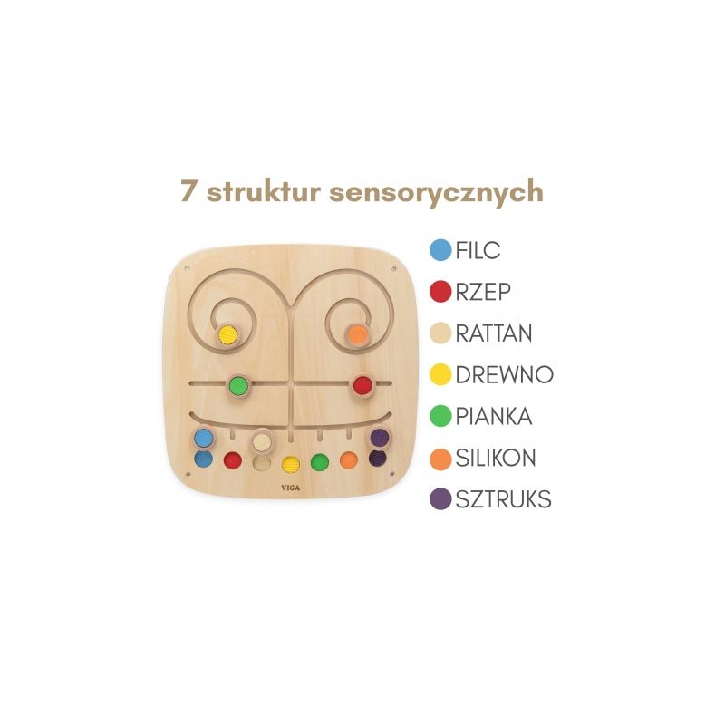 - Drewniana tablica ścienna z labiryntem i 7 fakturami