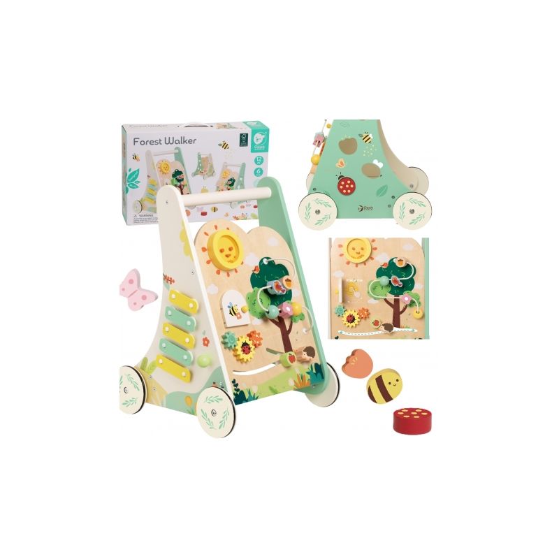Pozwól odkrywać swojemu dziecku świat pełen magii i nauki z drewnianym Leśnym Chodzikiem od marki Classic World. Zabawka wspiera pierwsze kroki dziecka, rozwija zmysły, motorykę i koordynację ręka-oko. Przesuwanie koralików, obracanie zębatek i uderzanie w cymbałki angażuje malucha, wzmacniając jego mięśnie dłoni oraz ucząc precyzji ruchów.