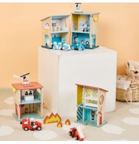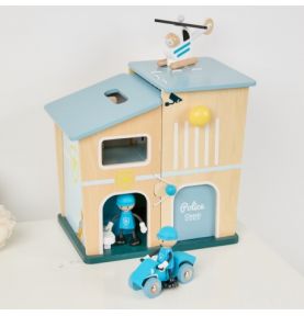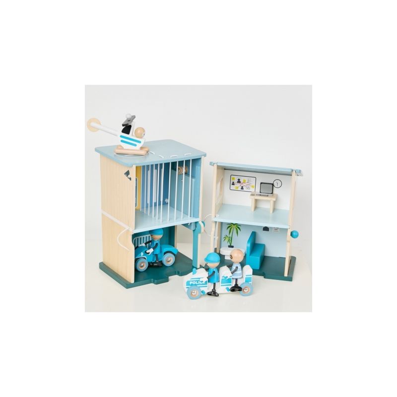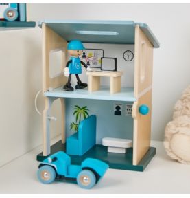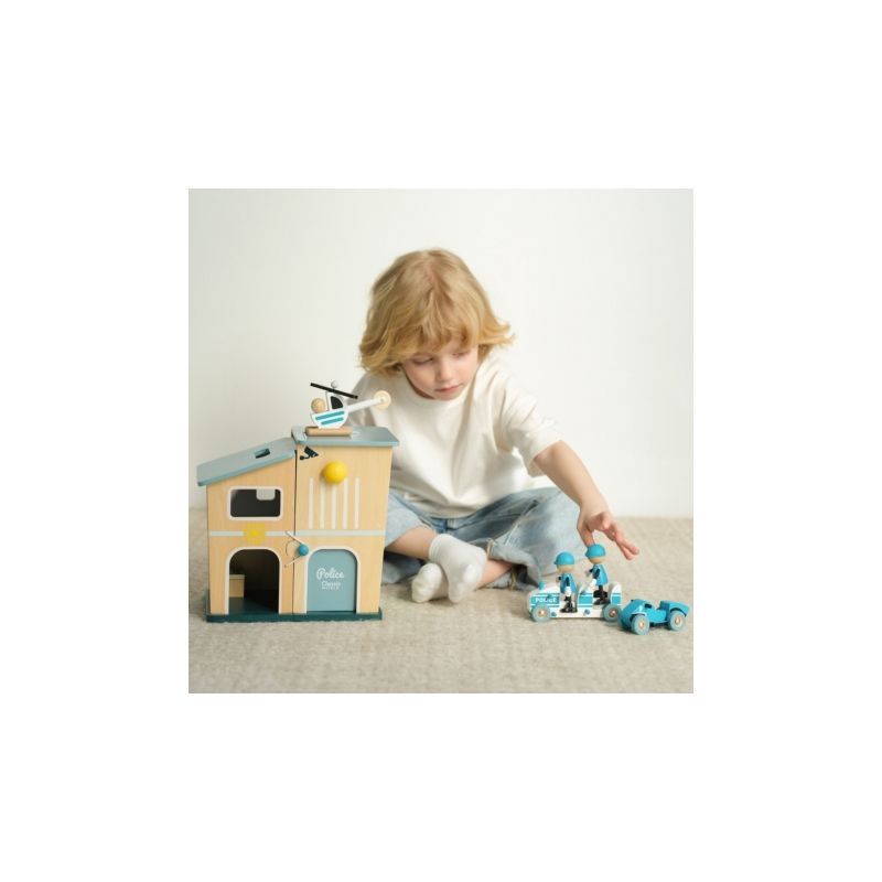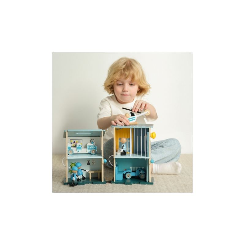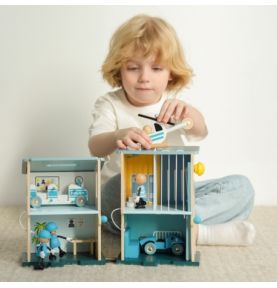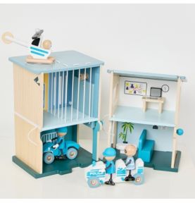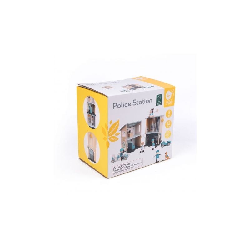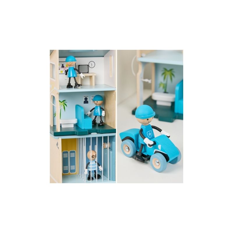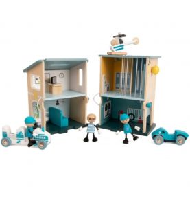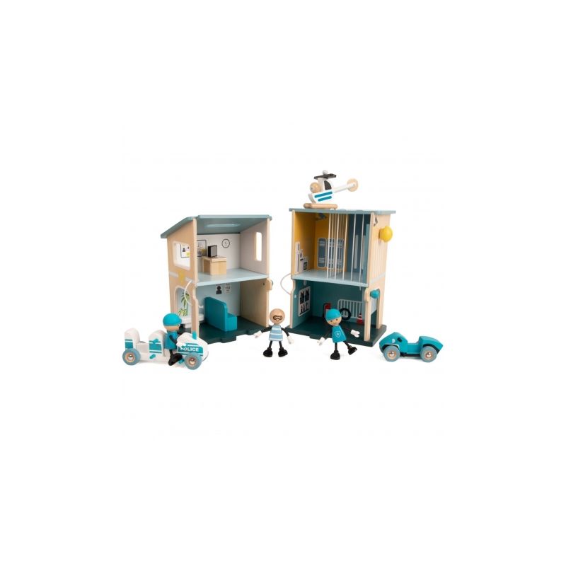 Zestaw Classic World Posterunek Policji 12el. pozwala dziecku wcielić się w rolę dzielnego policjanta i dbać o porządek w mieście. Wykonany z naturalnego drewna, zachwyca detalami i funkcjonalnością. Dwa budynki z celą i pokojem przesłuchań, ruchome elementy oraz pojazdy policyjne umożliwiają tworzenie własnych scenariuszy zabawy.