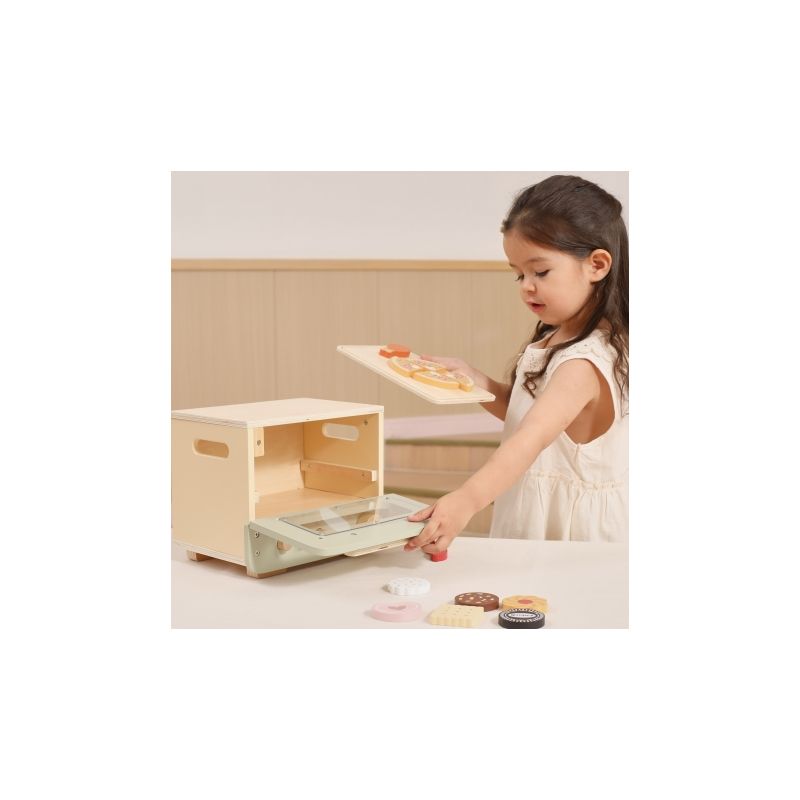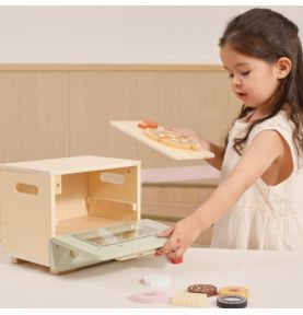 Piekarnik posiada otwieraną klapę, ruchome pokrętła oraz wysuwaną tacę, dzięki czemu zabawa jest niezwykle autentyczna i angażująca. Zestaw wspiera rozwój motoryki, koordynacji wzrokowo-ruchowej, kreatywności oraz świadomości społecznej, pozwalając maluchom naśladować dorosłych i tworzyć własne kulinarne arcydzieła.