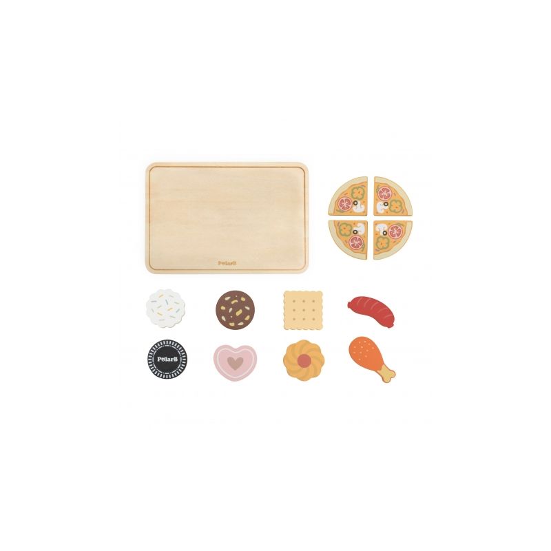 Pozwól swojemu dziecku poczuć się jak prawdziwy szef kuchni dzięki uroczemu, drewnianemu Zestawowi do Pieczenia Słodko-Pikantnych Potraw od VIGA! Stylizowany na nowoczesny toster/piekarnik w modnym zielonym odcieniu, zestaw idealnie sprawdzi się podczas kreatywnej zabawy w odgrywanie ról. W komplecie znajduje się aż 12 realistycznych, drewnianych akcesoriów, takich jak ciasteczka, mini pizza, kiełbaska czy udko kurczaka.
