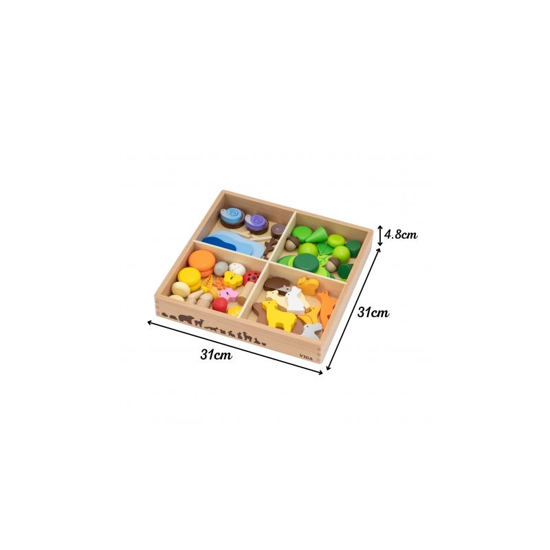VIGA Drewniane Klocki Kolorowe Leśne Opowieści Pudełko 58el.