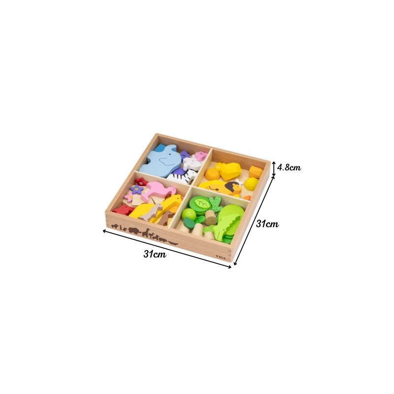 VIGA Drewniane Klocki Kolorowe Opowieści Tropikalne Pudełko 55el.
