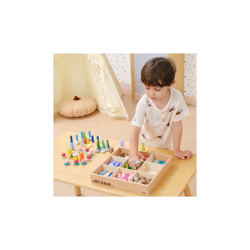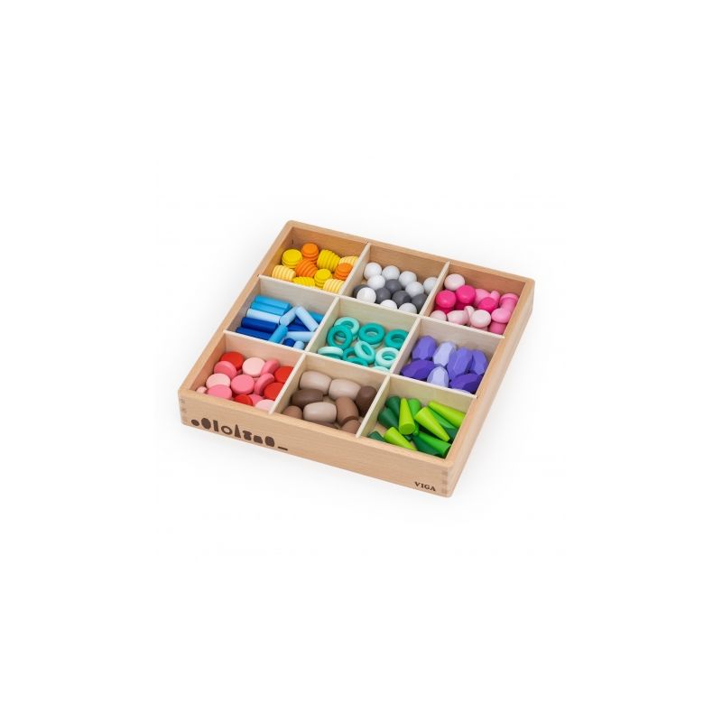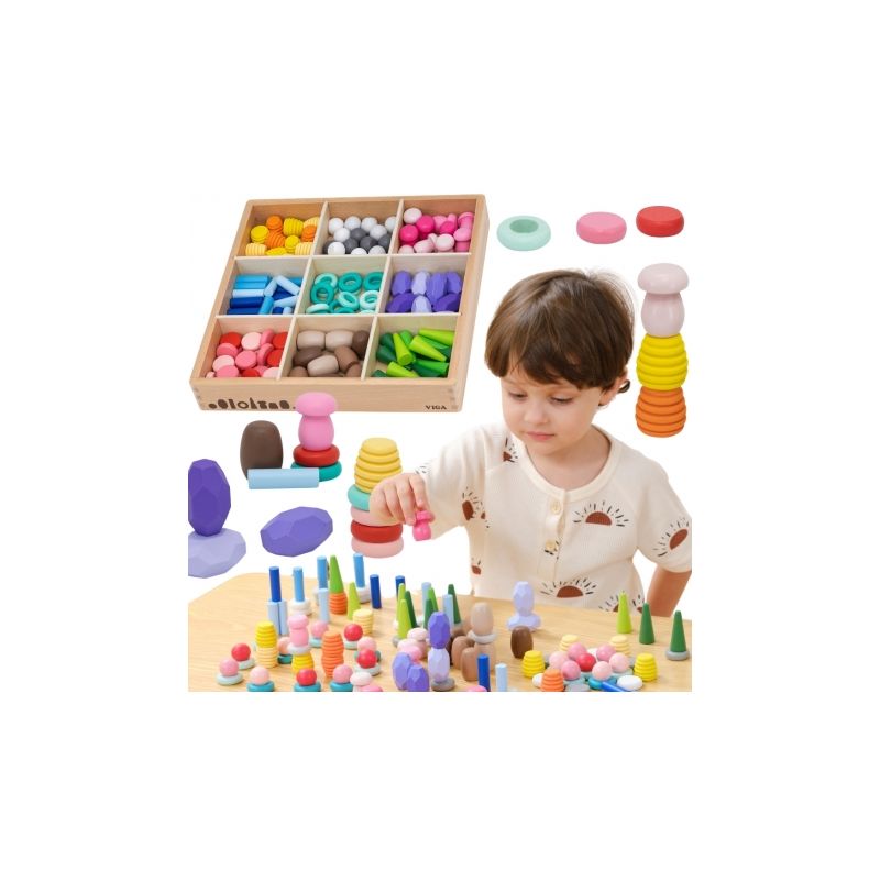 VIGA Klocki Drewniane Edukacyjne Układanka Montesori 141el.