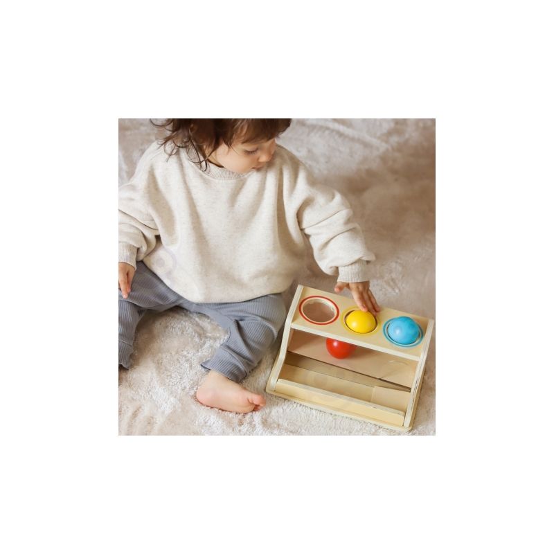 - Drewniane pudełko „Naciśnij piłkę” (3 piłki)