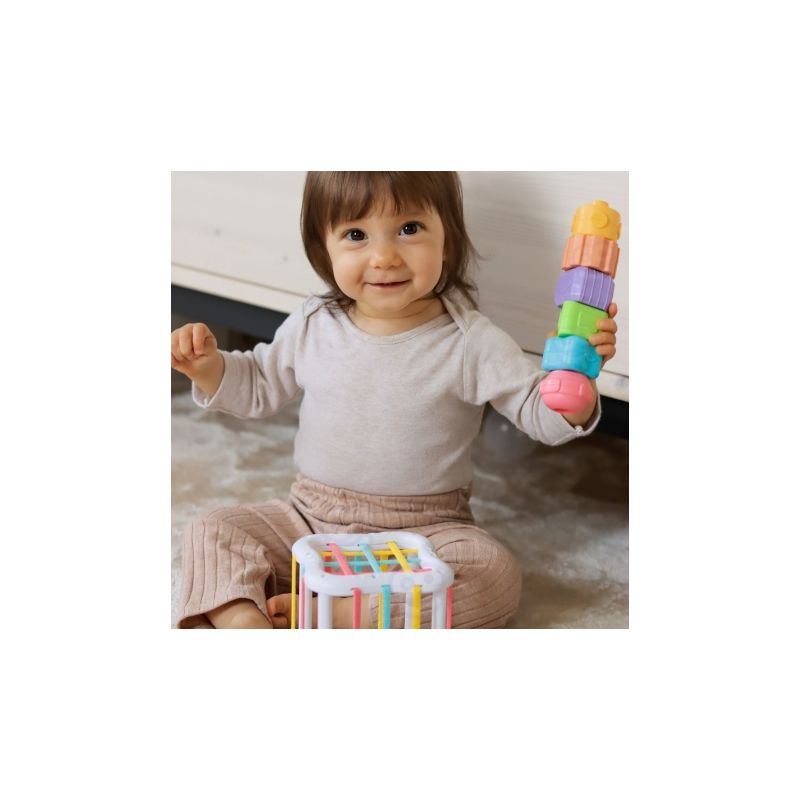 - Elastyczną kostkę sensoryczną z 6 kolorowymi blokami